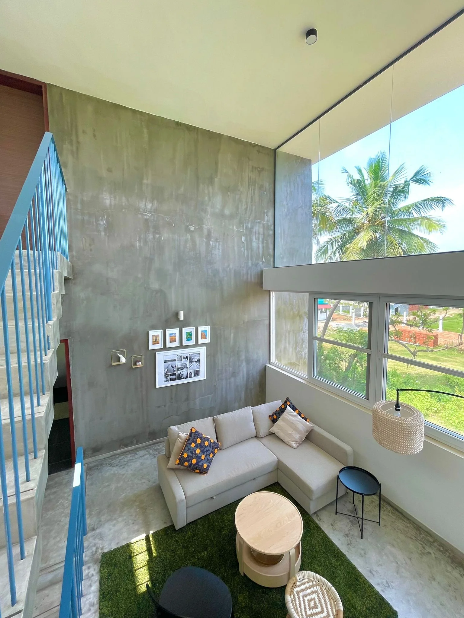 Set against the backdrop of South India’s rice fields, this home reinterprets modern architecture in a rural setting, balancing light, space, and expansiveness with a deep connection to nature. An exposed concrete shear wall defines the structure, both visually and functionally, integrating sunshades, green roofs, and sustainable water management.