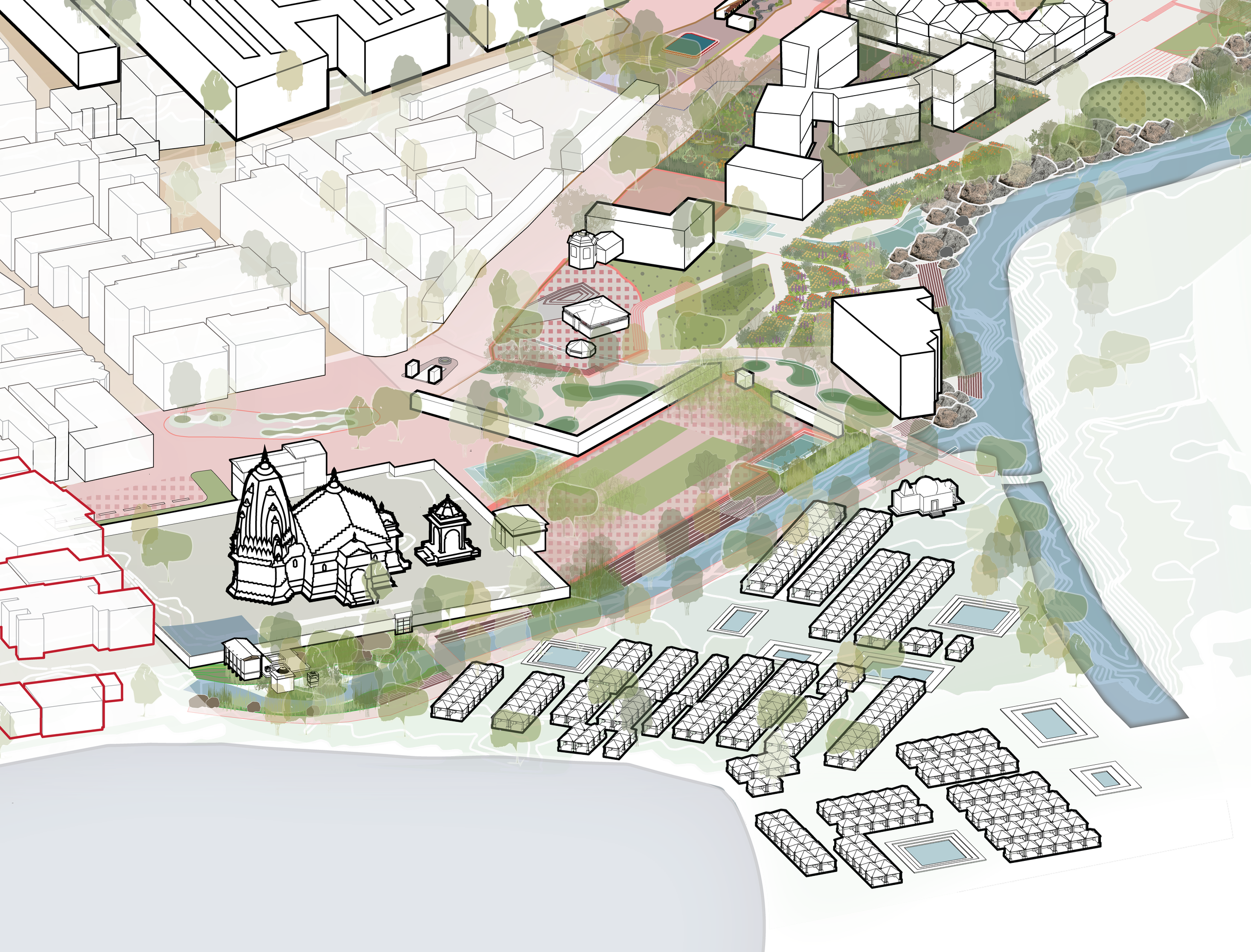 The urban vision of Trimbakeshwar was to create an integrated Darshan path with the ethos of 'Frame, Reconnect, Enhance'. The idea was to frame the temple and sacred landscapes throughout the Darshan Path, reconnect with the sacred to the geography of the Godavari, and enhance the urban experience for all users. The Darshan Path is imagined as a living cultural spine, a place where heritage, ecology, and community gather to shape a more sustainable future.